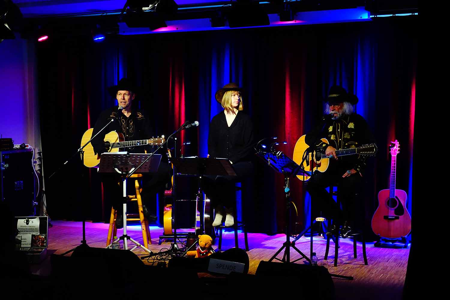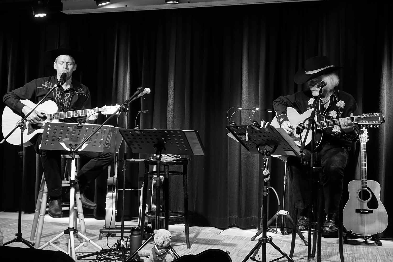 „The Trailriders“ haben sich dieser Sehnsucht verschrieben. Seit fast 20 Jahren singen und spielen sie Country und American Folk. „The Trailriders“, das sind: Uwe van Egdom, Klassikgitarre, 6-saitige Westerngitarre, Ukulele, Gesang, und Ulf Below, 6- und 12-saitige Westerngitarre, Gesang, Mundharmonika, Dobro-Gitarre. Am 17.5.19 in Gleis11 wurden sie verstärkt durch Sandra van Egdom, wie der Name andeutet, mit Uwe verheiratet – seit drei Wochen, Glückwunsch!