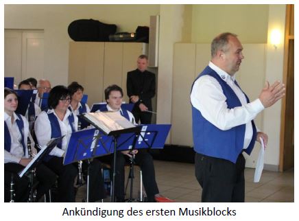 Die Herbst-Matinee startete nach einer kurzen Ansprache der Vorsitzenden, Elke Krägenbring, mit einer Ehrung unseres Dirigenten und Kapellmeisters Michael Hehn, dem unsere Vereinsfotografin ein kleines Geschenk überreichte. Danach leitete ein Musiker durch das Programm und stellte dem Publikum die einzelnen Titel eines Musikblocks vor.