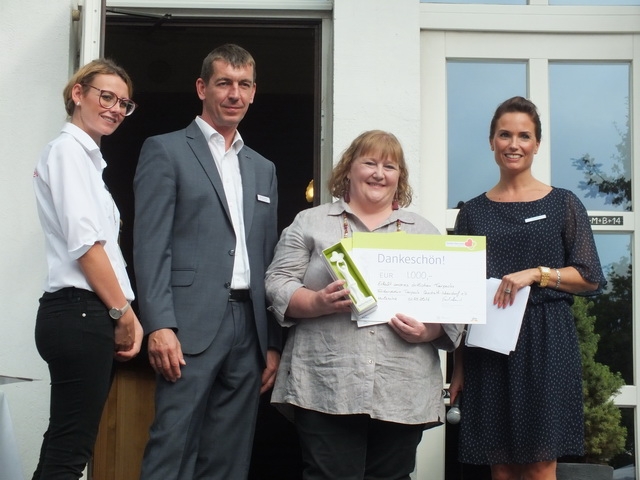 Am 02.09. konnte sie für uns einen Scheck i.H.v. 1000 Euro und eine Skulptur in der Villa Sophienhöhe in Kerpen entgegennehmen.